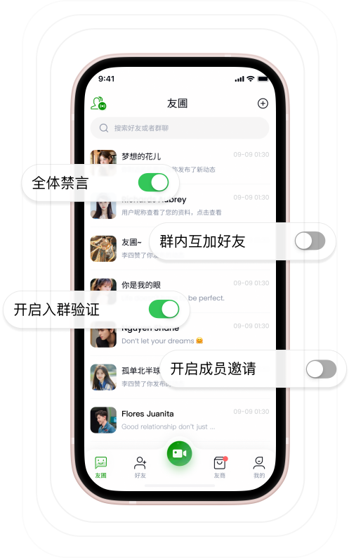保證所有群成員社交的私密性,充分尊重每一位群成員不被打擾的社交需求。